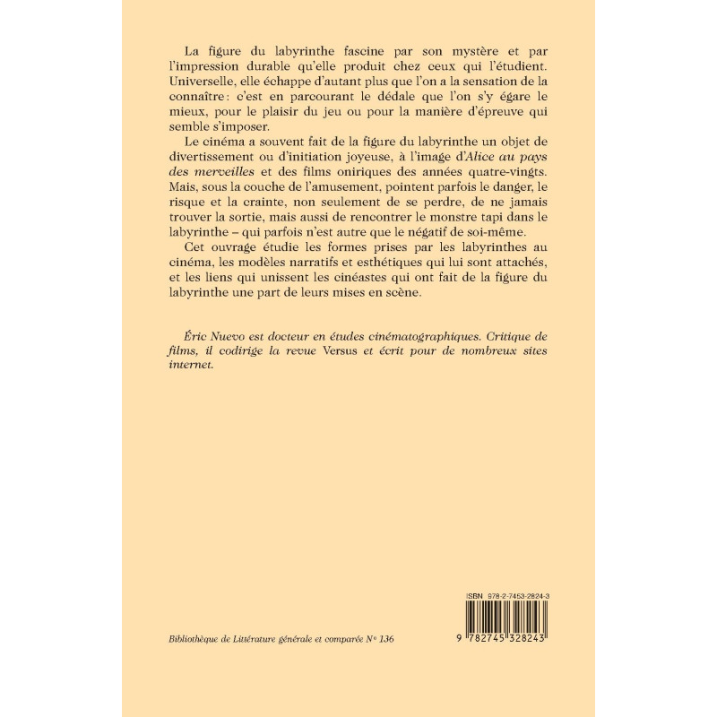 Cet ouvrage étudie les formes prises par les labyrinthes au cinéma, les modèles narratifs et esthétiques qui lui sont attachés, et les liens qui unissent les cinéastes qui ont fait de la figure du labyrinthe une part de leurs mises en scène.