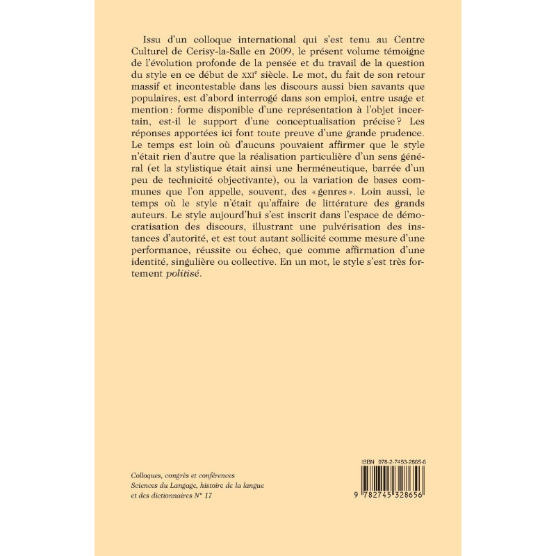Issu d’un colloque international qui s’est tenu au Centre Culturel de Cerisy-la-Salle en 2009, le présent volume témoigne de l’évolution profonde de la pensée et du travail de la question du style en ce début de XXIe siècle. Le mot, du fait de son retour massif et incontestable dans les discours aussi bien savants que populaires, est d’abord interrogé dans son emploi, entre usage et mention: forme disponible d’une représentation à l’objet incertain, est-il le support d’une conceptualisation précise ? Les réponses apportées ici font toute preuve d’une grande prudence. Le temps est loin où d’aucuns pouvaient affirmer que le style n’était rien d’autre que la réalisation particulière d’un sens général (et la stylistique était ainsi une herméneutique, barrée d’un peu de technicité objectivante), ou la variation de bases communes que l’on appelle, souvent, des