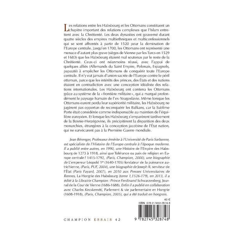 Les relations entre les Habsbourg et les Ottomans constituent un chapitre important des relations complexes que l’Islam entretient avec la Chrétienté. Les deux dynasties ont gouverné durant quatre siècles des empires multiethniques et multiconfessionnels qui se sont affrontés à partir de 1520 pour la domination de l’Europe centrale. Jusqu’en 1700, les Ottomans ont représenté une menace d’autant plus grave (sièges de Vienne par les Turcs en 1529 et 1683) que les Habsbourg étaient mal soutenus par le reste de la Chrétienté. Ceux-ci ont néanmoins réussi, avec l’appui de quelques alliés (Allemands du Saint Empire, Polonais, Espagnols, papauté) à empêcher les Ottomans de conquérir toute l’Europe centrale. Il n’y eut jamais d’union sacrée de l’Europe contre le péril ottoman, parce que les intérêts des princes, des États et des nations étaient en contradiction avec une conception idéaliste des relations internationales. Les Habsbourg ont contenu les Ottomans grâce au système de la « frontière militaire », qui a marqué profondément le paysage humain de l’ex-Yougoslavie. Même lorsque les Ottomans eurent perdu leur supériorité militaire, les Habsbourg ne jugèrent pas opportun de reconquérir les Balkans, car la Sublime Porte était considérée comme indispensable au maintien de l’équilibre européen. Et lorsque les Habsbourg s’emparèrent tardivement de la Bosnie-Herzégovine, ils précipitèrent la disparition des deux monarchies, étrangères à la conception jacobine de l’État nation, qui ne survécurent pas à la Première Guerre mondiale.