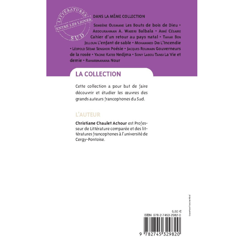 par Christiane CHAULET ACHOUR, Professeur de Littérature comparée et des littératures francophones à l’université de Cergy-Pontoise