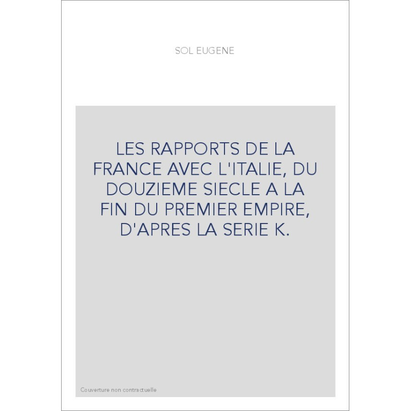LES RAPPORTS DE LA FRANCE AVEC L'ITALIE, DU DOUZIEME SIECLE A LA FIN DU PREMIER EMPIRE, D'APRES LA SERIE K.