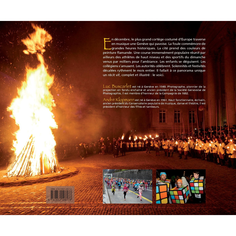 en musique une Genève qui pavoise. La foule commémore de grandes heures historiques. La cité prend des couleurs de peinture flamande. Une course immensément populaire réunit par ailleurs des athlètes de haut niveau et des sportifs du dimanche venus par milliers pour l’ambiance. Les enfants se déguisent. Les collégiens s’amusent. Les autorités célèbrent. Solennités et festivités décalées rythment le mois entier. Il fallait à ce panorama unique un récit vif, complet et illustré : le voici.