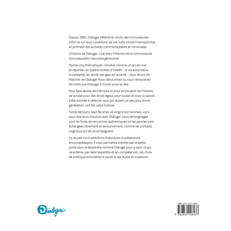 Ce recueil n’a ni ambitions théoriques ni prétentions encyclopédiques. Il vous permettra d’entrer par la petite porte dans le labyrinthe nommé Dialogai pour y saisir ce qui caractérise, par-delà l’expertise et les compétences, ses choix de politique associative, à savoir la vie, la joie et la passion.