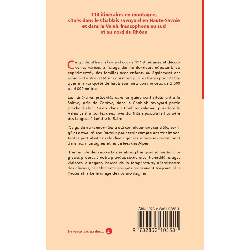 114 itinéraires en montagne, situés dans le Chablais savoyard en Haute-Savoie et dans le Valais francophone au sud et au nord du Rhône
