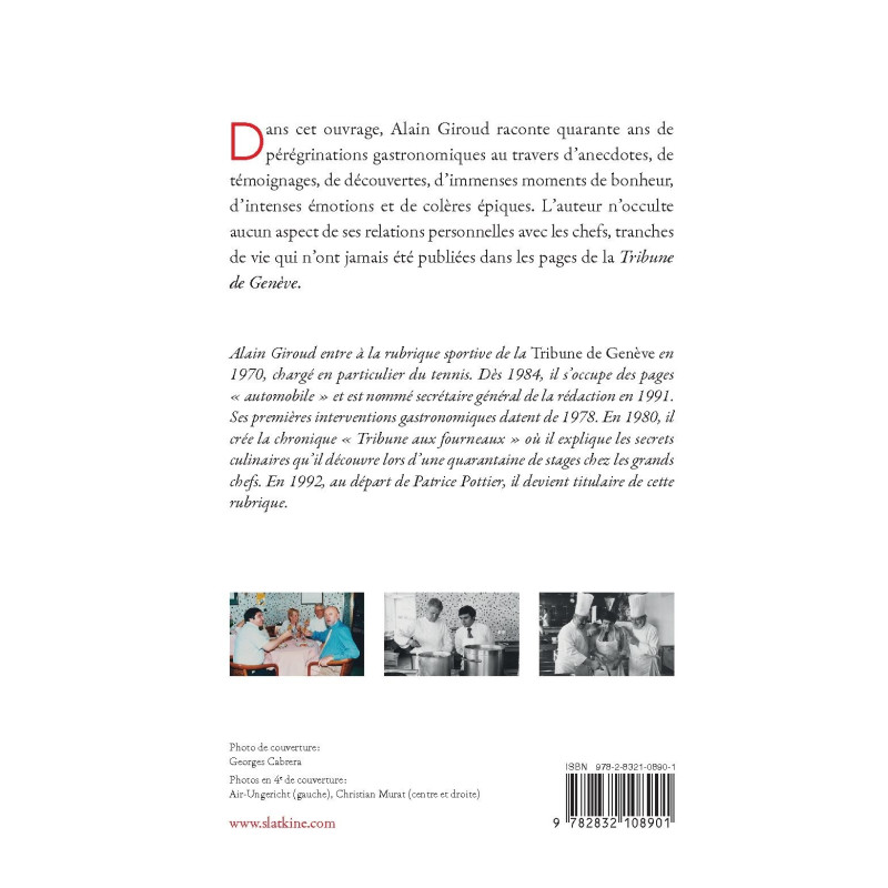 Dans cet ouvrage, Alain Giroud raconte quarante ans de pérégrinations gastronomiques au travers d’anecdotes, de témoignages, de découvertes, d’immenses moments de bonheur, d’intenses émotions et de colères épiques. L’auteur n’occulte aucun aspect de ses relations personnelles avec les chefs, tranches de vie qui n’ont jamais été publiées dans les pages de la Tribune de Genève.