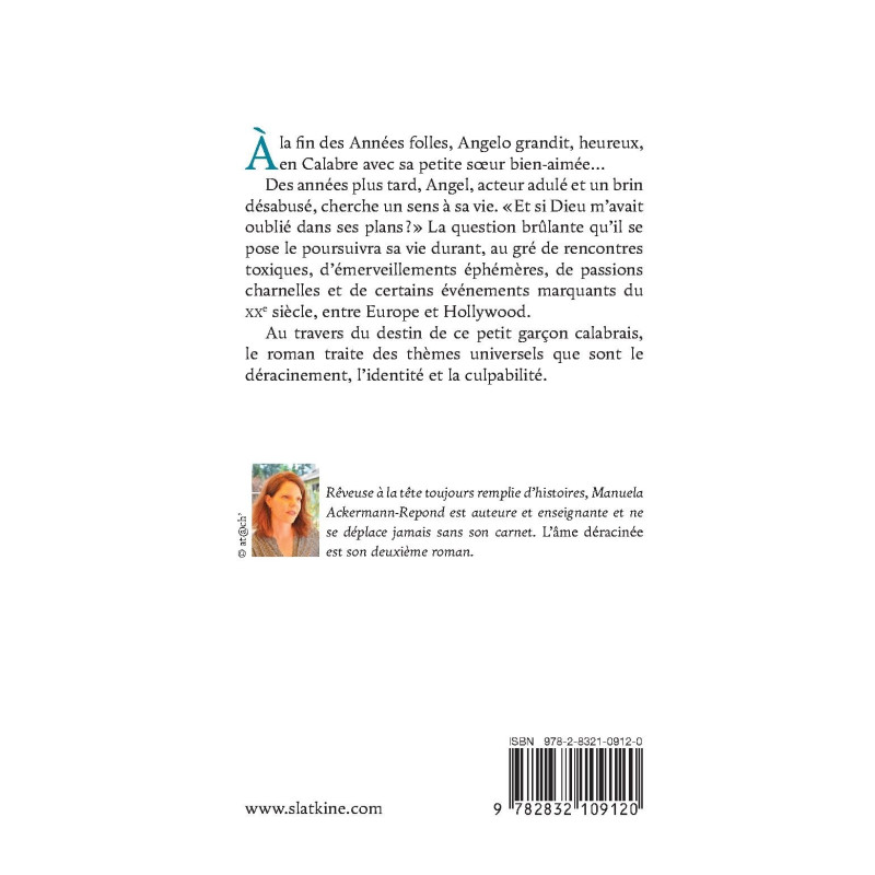 Rêveuse à la tête toujours remplie d’histoires, Manuela Ackermann-Repond est auteure et enseignante et ne se déplace jamais sans son carnet. L’âme déracinée est son deuxième roman.