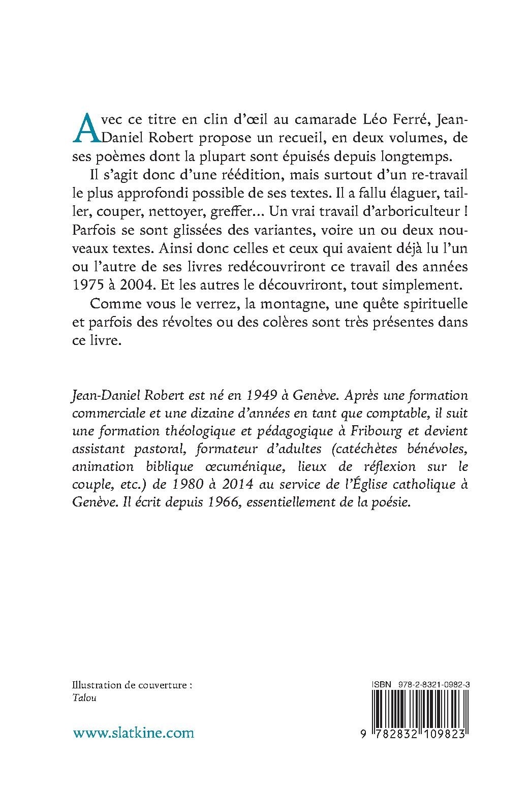 Avec ce titre en clin d’oeil au camarade Léo Ferré, Jean-Daniel Robert propose un recueil, en deux volumes, de ses poèmes dont la plupart sont épuisés depuis longtemps.
