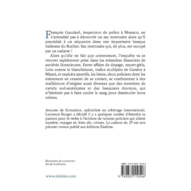 Avocate de formation, spécialiste en arbitrage international, Laurence Burger a décidé il y a quelques années d’étendre sa passion pour le verbe à l’écriture de romans policiers qui allient mystère, voyages et, bien sûr, crimes. Le cadavre du 25 est son premier roman publié aux éditions Slatkine.