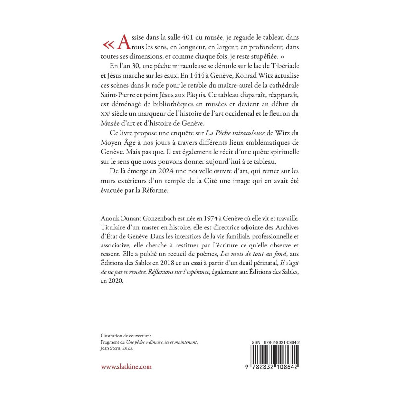 Ce livre propose une enquête sur La Pêche miraculeuse de Witz du Moyen Âge à nos jours à travers différents lieux emblématiques de Genève. Mais pas que. Il est également le récit d’une quête spirituelle sur le sens que nous pouvons donner aujourd’hui à ce tableau.