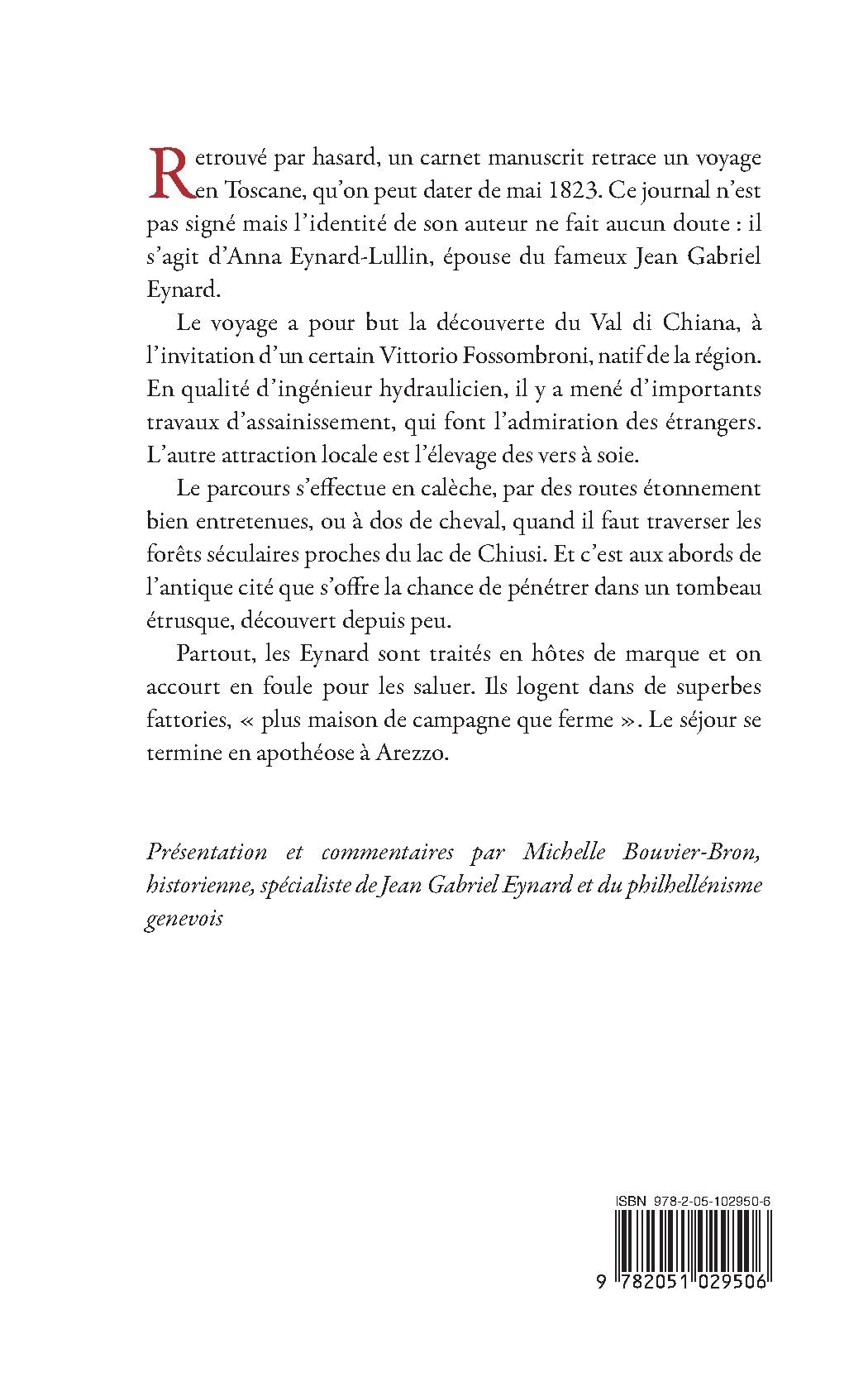 Retrouvé par hasard, un carnet manuscrit retrace un voyage en Toscane, qu’on peut dater de mai 1823. Ce journal n’est pas signé mais l’identité de son auteur ne fait aucun doute : il s’agit d’Anna Eynard-Lullin, épouse du fameux Jean Gabriel Eynard.