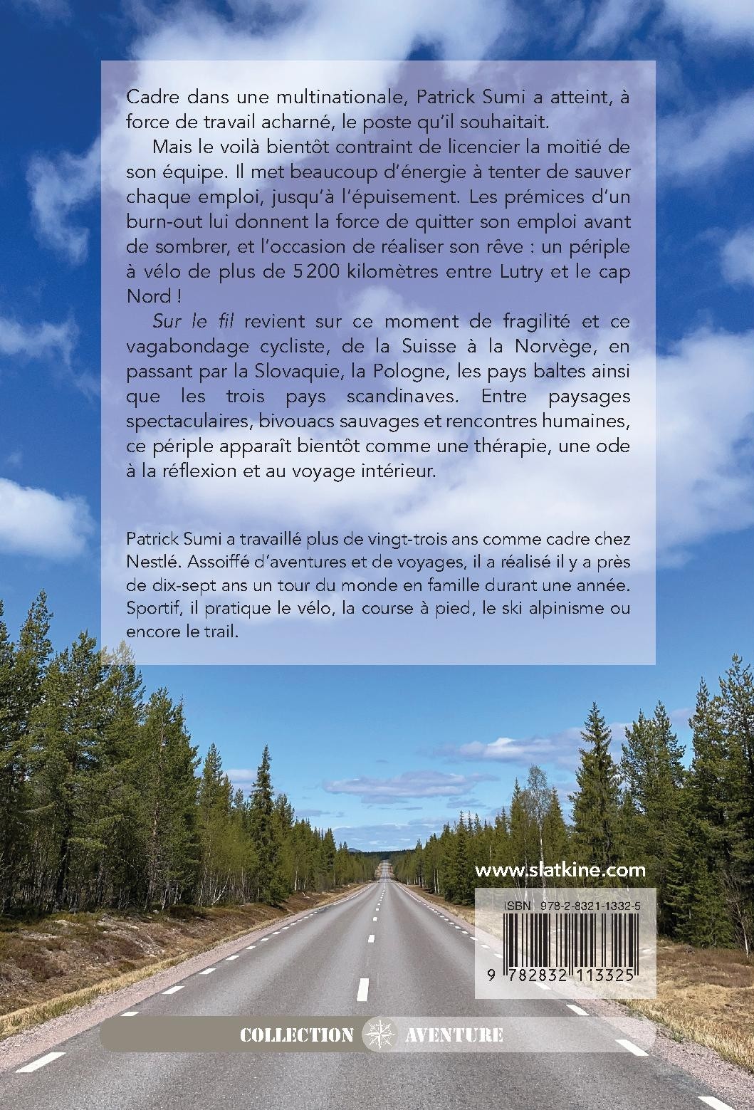 Patrick Sumi a travaillé plus de vingt-trois ans comme cadre chez Nestlé. Assoiffé d’aventures et de voyages, il a réalisé il y a près de dix-sept ans un tour du monde en famille durant une année. Sportif, il pratique le vélo, la course à pied, le ski alpinisme ou encore le trail.