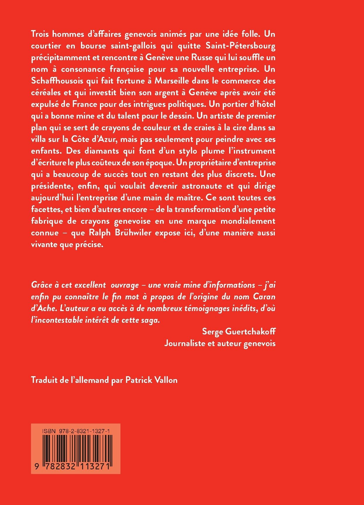 Grâce à cet excellent ouvrage – une vraie mine d’informations – j’ai enfin pu connaître le fi n mot à propos de l’origine du nom Caran d’Ache. L’auteur a eu accès à de nombreux témoignages inédits, d’où l’incontestable intérêt de cette saga.