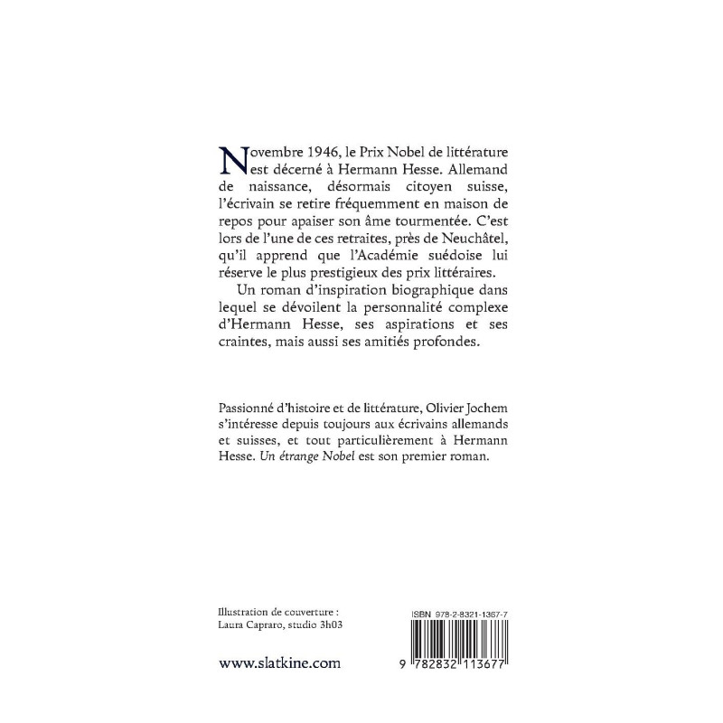 Passionné d’histoire et de littérature, Olivier Jochem s’intéresse depuis toujours aux écrivains allemands et suisses, et tout particulièrement à Hermann Hesse. Un étrange Nobel est son premier roman.