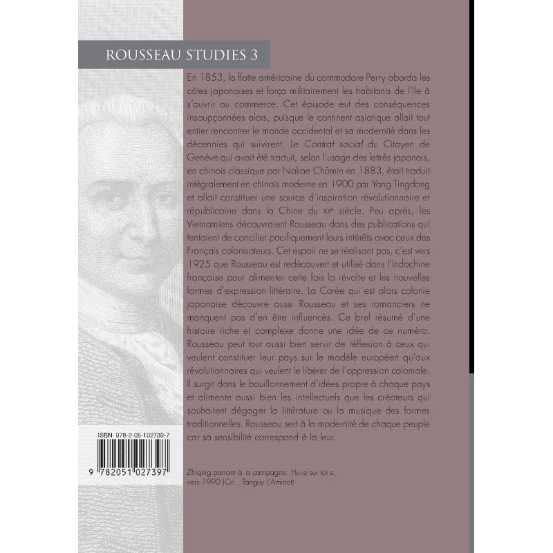 En 1853, la flotte américaine du commodore Perry aborda les côtes japonaises et força militairement les habitants de l’île à s’ouvrir au commerce. Cet épisode eut des conséquences insoupçonnées alors, puisque le continent asiatique allait tout entier rencontrer le monde occidental et sa modernité dans les décennies qui suivirent. Le Contrat social du Citoyen de Genève qui avait été traduit, selon l’usage des lettrés japonais, en chinois classique par Nakae Chomin en 1883, était traduit intégralement en chinois moderne en 1900 par Yang Tingdong et allait constituer une source d’inspiration révolutionnaire et républicaine dans la Chine du XXe siècle. Peu après, les Vietnamiens découvraient Rousseau dans des publications qui tentaient de concilier pacifiquement leurs intérêts avec ceux des Français colonisateurs. Cet espoir ne se réalisant pas, c’est vers 1925 que Rousseau est redécouvert et utilisé dans l’Indochine française pour alimenter cette fois la révolte et les nouvelles formes d’expression littéraire. La Corée qui est alors colonie japonaise découvre aussi Rousseau et ses romanciers ne manquent pas d’en être influencés. Ce bref résumé d’une histoire riche et complexe donne une idée de ce numéro. Rousseau peut tout aussi bien servir de réflexion à ceux qui veulent constituer leur pays sur le modèle européen qu’aux révolutionnaires qui veulent le libérer de l’oppression coloniale. Il surgit dans le bouillonnement d’idées propre à chaque pays et alimente aussi bien les intellectuels que les créateurs qui souhaitent dégager la littérature ou la musique des formes traditionnelles. Rousseau sert à la modernité de chaque peuple car sa sensibilité correspond à la leur.