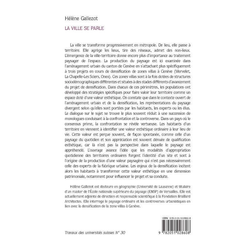 La ville se transforme progressivement en métropole. De lieu, elle passe à territoire. Elle agrège les lieux, tire des réseaux, admet des non-lieux. L’émergence de la ville-territoire donne encore plus d’importance au traitement paysager de l’espace. La production du paysage est ici examinée dans l’aménagement urbain du canton de Genève en s’attachant plus spécifiquement à trois projets en cours de densification de zones villas à Genève (Mervelet, La Chapelle-Les Sciers, Onex). Ces zones villas sont à la fois dotées de structures sociodémographiques différentes et situées à des stades différents d’avancement du projet de densification. Dans chacun de ces périmètres, les populations ont développé des stratégies spécifiques pour faire valoir leur territoire comme un espace doté d’une valeur esthétique. On constate que dans le contexte ouvert de l’aménagement urbain et de la densification, les représentations du paysage divergent selon qu’elles sont portées par les habitants, les experts ou les élus. Le dialogue sur le sujet se trouve le plus souvent réduit à une succession de monologues conduisant à la confrontation et la controverse. Dans un pays où le consensus prime, la confrontation se révèle vertueuse. Les habitants d’un territoire en viennent à identifier une valeur esthétique ordinaire à leur lieu de vie. Cette valeur est perçue souvent, de façon spontanée, comme celle d’un paysage du quotidien et son appréciation est souvent dénuée de qualification esthétique, car là n’est pas la perspective dans laquelle le paysage est appréhendé. L’ouvrage avance l’idée que les modalités d’appropriation quotidienne des territoires ordinaires forgent l’identité d’un site et sont à l’origine de la production d’une valeur paysagère qui n’est pas nécessairement celle des experts de la fabrique urbaine. Les enjeux de la densification incitent alors les habitants à transformer cette valeur esthétique en une dimension patrimoniale, notamment pour influencer le projet et sa conduite.