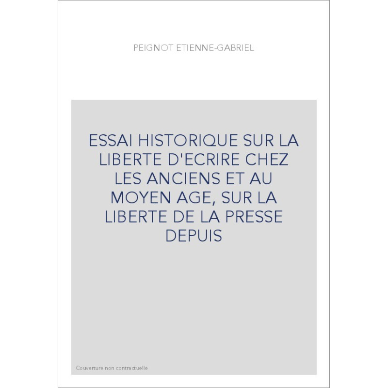ESSAI HISTORIQUE SUR LA LIBERTE D'ECRIRE CHEZ LES ANCIENS ET AU MOYEN AGE, SUR LA LIBERTE DE LA PRESSE DEPUIS