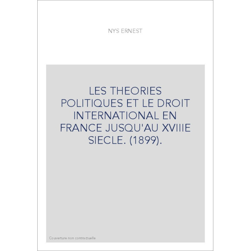 LES THEORIES POLITIQUES ET LE DROIT INTERNATIONAL EN FRANCE JUSQU'AU XVIIIE SIECLE. (1899).