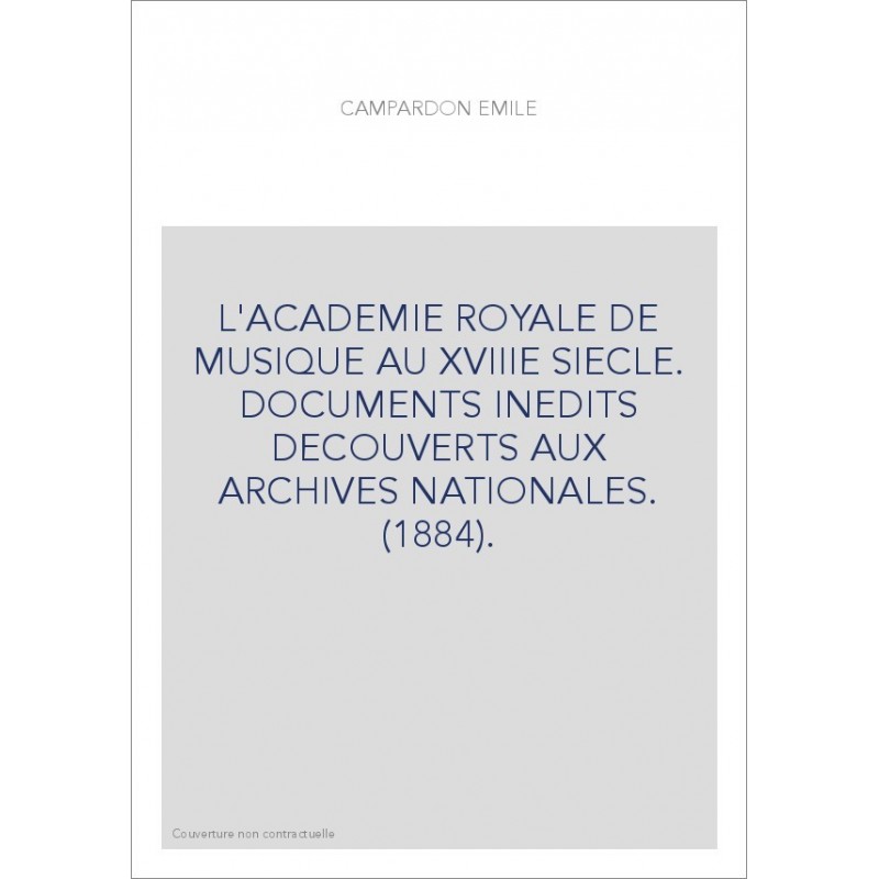 L'ACADEMIE ROYALE DE MUSIQUE AU XVIIIE SIECLE. DOCUMENTS INEDITS DECOUVERTS AUX ARCHIVES NATIONALES. (1884).
