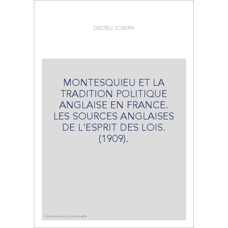 MONTESQUIEU ET LA TRADITION POLITIQUE ANGLAISE EN FRANCE. LES SOURCES ANGLAISES DE L'ESPRIT DES LOIS. (1909).