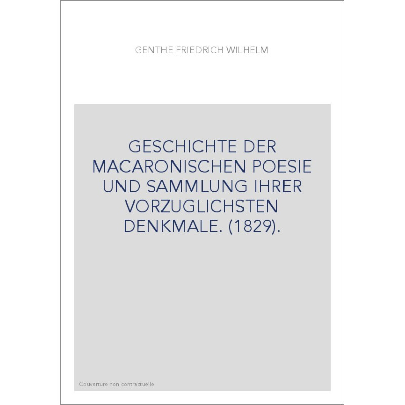 GESCHICHTE DER MACARONISCHEN POESIE UND SAMMLUNG IHRER VORZUGLICHSTEN DENKMALE. (1829).