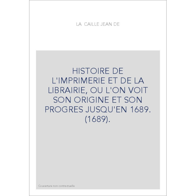 HISTOIRE DE L'IMPRIMERIE ET DE LA LIBRAIRIE, OU L'ON VOIT SON ORIGINE ET SON PROGRES JUSQU'EN 1689. (1689).