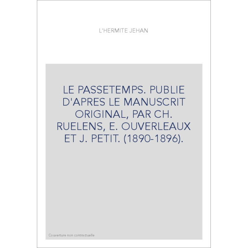 LE PASSETEMPS. PUBLIE D'APRES LE MANUSCRIT ORIGINAL, PAR CH. RUELENS, E. OUVERLEAUX ET J. PETIT. (1890-1896).
