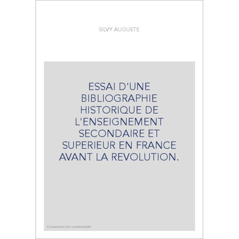 ESSAI D'UNE BIBLIOGRAPHIE HISTORIQUE DE L'ENSEIGNEMENT SECONDAIRE ET SUPERIEUR EN FRANCE AVANT LA REVOLUTION.
