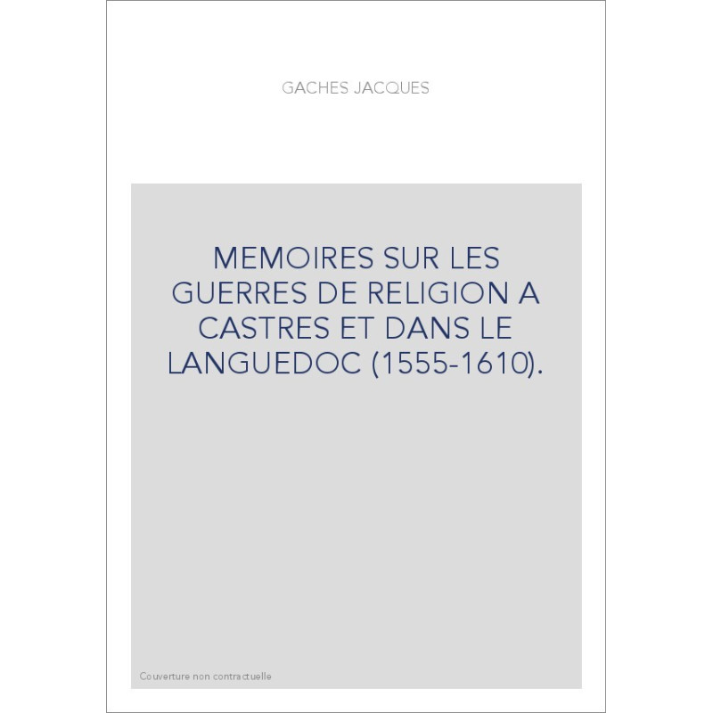 MEMOIRES SUR LES GUERRES DE RELIGION A CASTRES ET DANS LE LANGUEDOC (1555-1610).