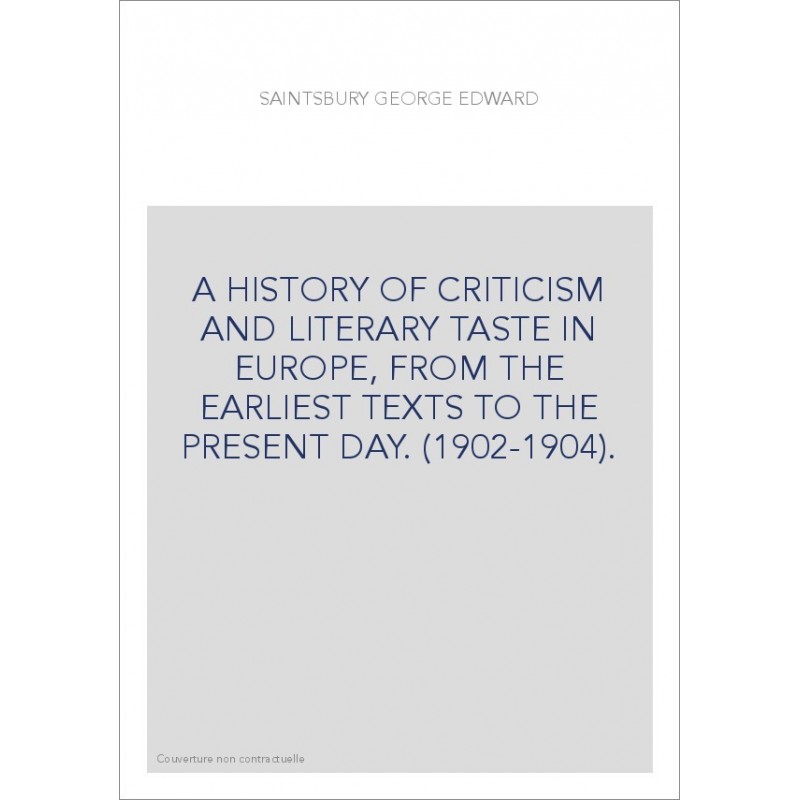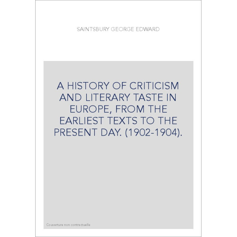 A HISTORY OF CRITICISM AND LITERARY TASTE IN EUROPE, FROM THE EARLIEST TEXTS TO THE PRESENT DAY. (1902-1904).