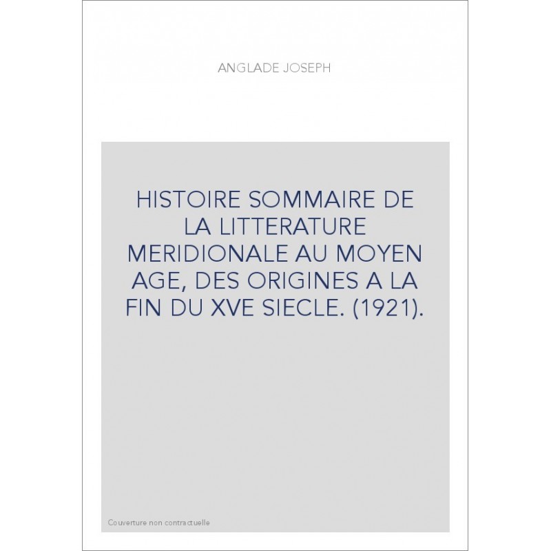 HISTOIRE SOMMAIRE DE LA LITTERATURE MERIDIONALE AU MOYEN AGE, DES ORIGINES A LA FIN DU XVE SIECLE. (1921).
