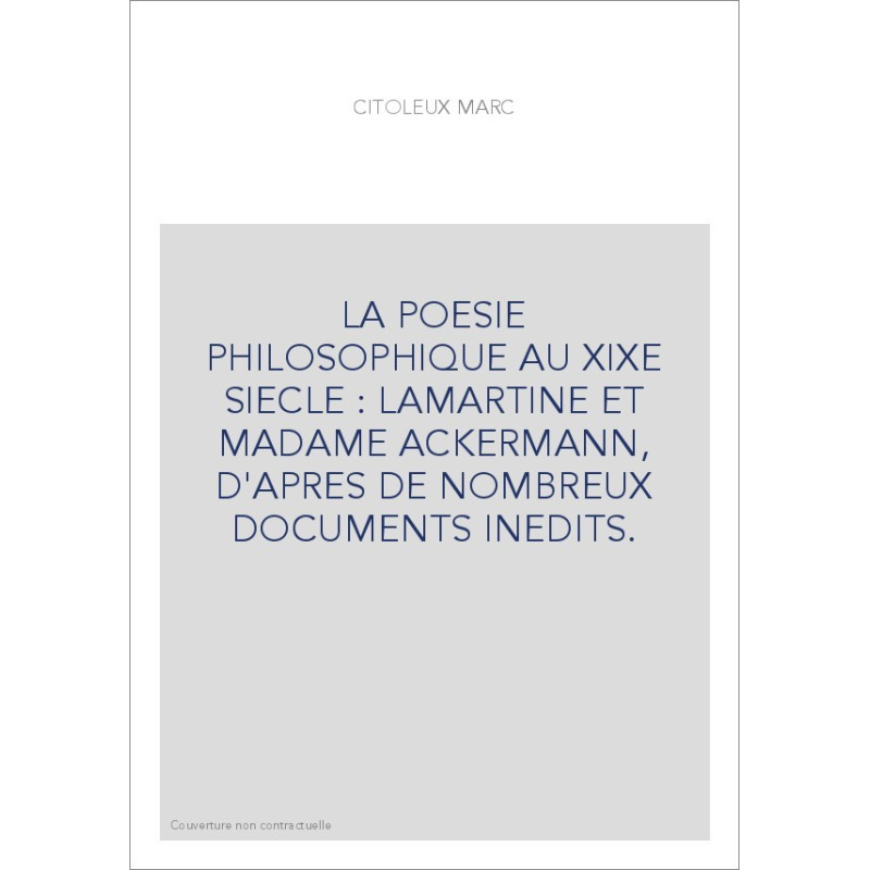 LA POESIE PHILOSOPHIQUE AU XIXE SIECLE : LAMARTINE ET MADAME ACKERMANN, D'APRES DE NOMBREUX DOCUMENTS INEDITS.