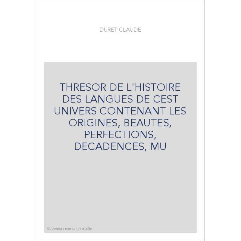 THRESOR DE L'HISTOIRE DES LANGUES DE CEST UNIVERS CONTENANT LES ORIGINES, BEAUTES, PERFECTIONS, DECADENCES, MU