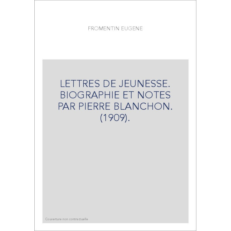 LETTRES DE JEUNESSE. BIOGRAPHIE ET NOTES PAR PIERRE BLANCHON. (1909).