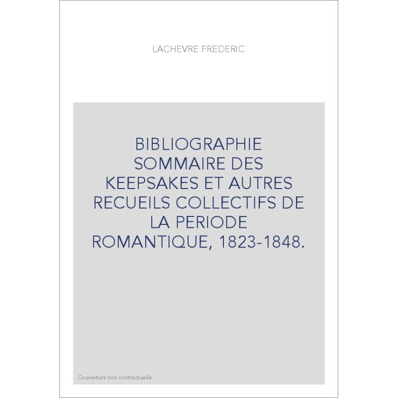 BIBLIOGRAPHIE SOMMAIRE DES "KEEPSAKES" ET AUTRES RECUEILS COLLECTIFS DE LA PERIODE ROMANTIQUE, 1823-1848