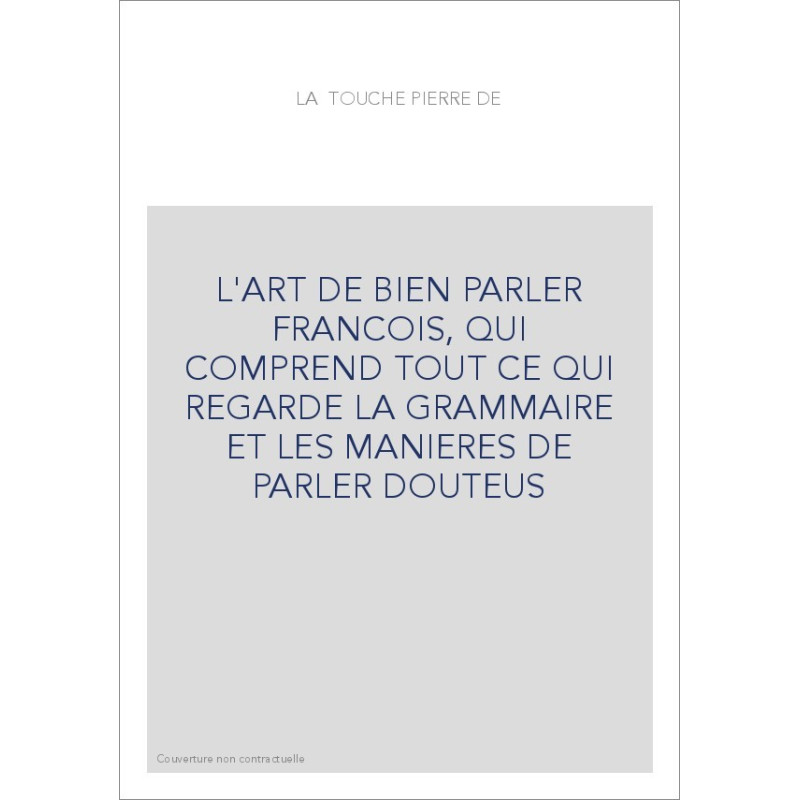 L'ART DE BIEN PARLER FRANCOIS, QUI COMPREND TOUT CE QUI REGARDE LA GRAMMAIRE ET LES MANIERES DE PARLER DOUTEUS
