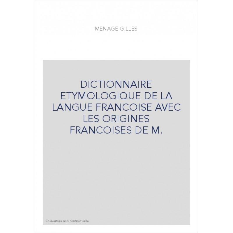 DICTIONNAIRE ETYMOLOGIQUE DE LA LANGUE FRANCOISE AVEC LES ORIGINES FRANCOISES DE M.