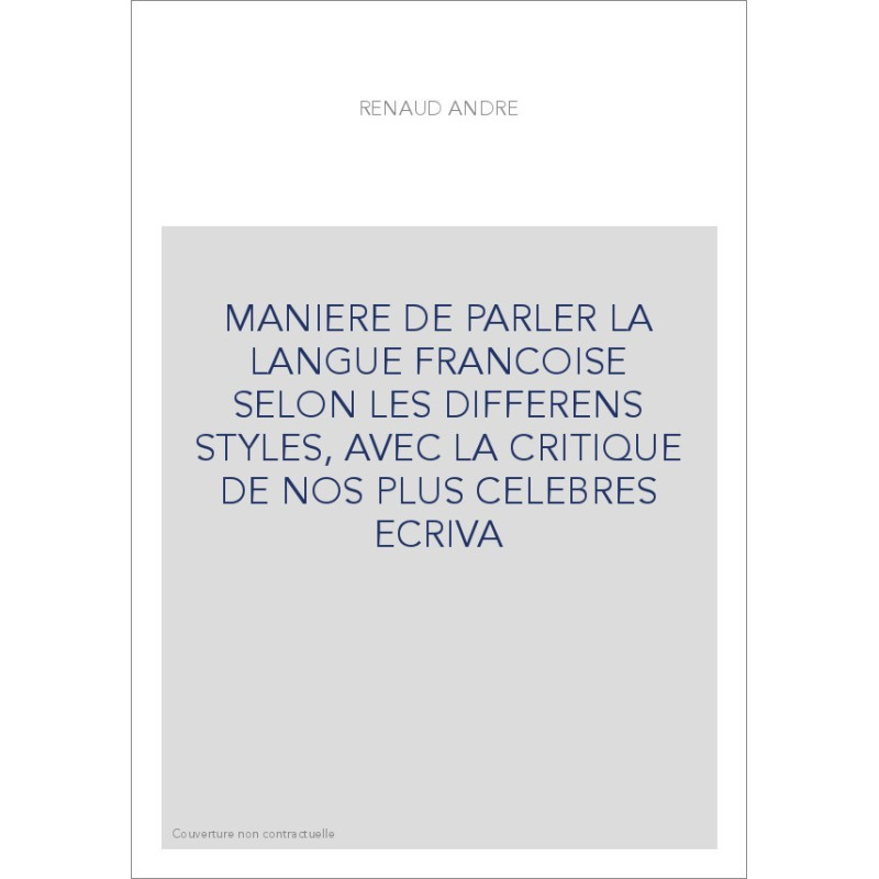 MANIERE DE PARLER LA LANGUE FRANCOISE SELON LES DIFFERENS STYLES, AVEC LA CRITIQUE DE NOS PLUS CELEBRES ECRIVA