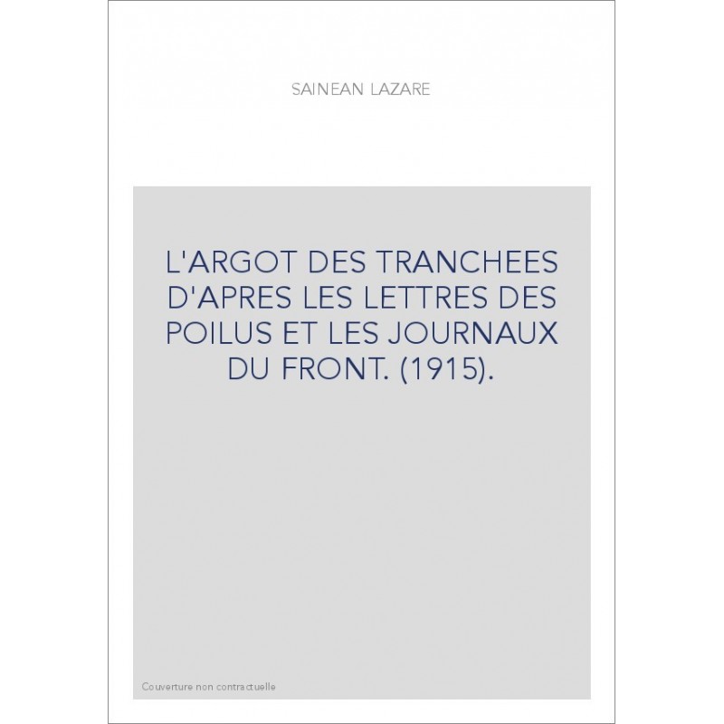 L'ARGOT DES TRANCHEES D'APRES LES LETTRES DES POILUS ET LES JOURNAUX DU FRONT. (1915).