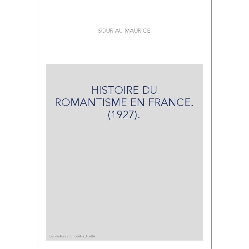 HISTOIRE DU ROMANTISME EN FRANCE. (1927).
