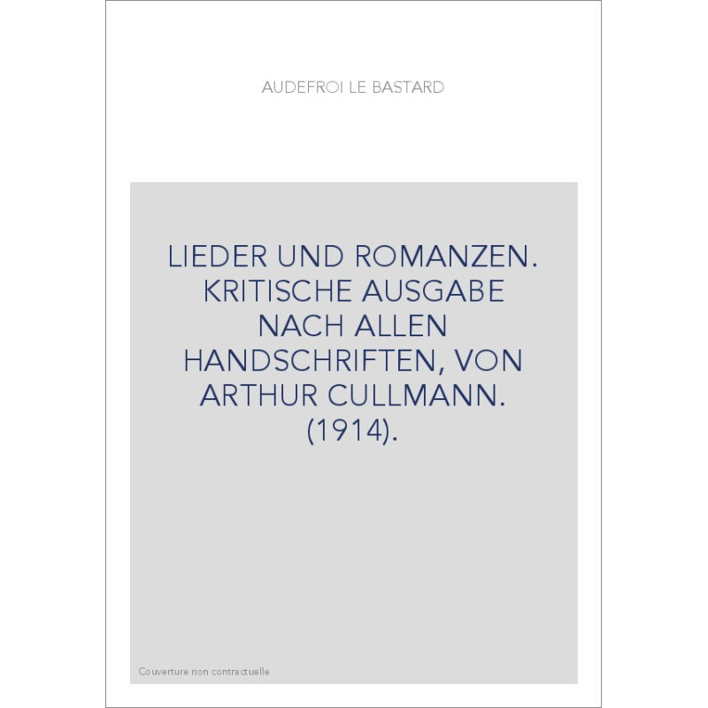 LIEDER UND ROMANZEN. KRITISCHE AUSGABE NACH ALLEN HANDSCHRIFTEN, VON ARTHUR CULLMANN. (1914).