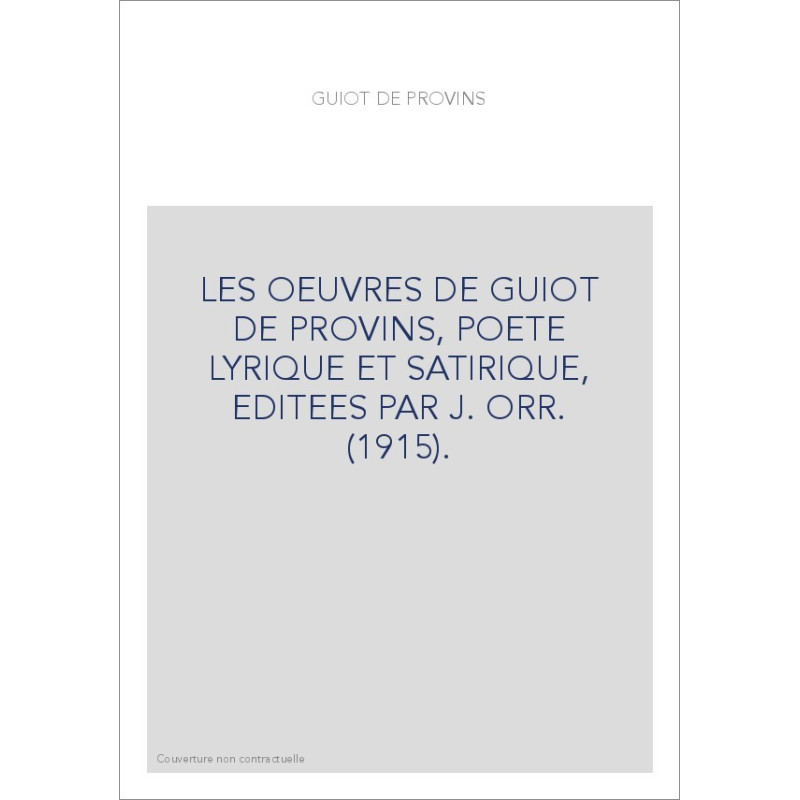 LES OEUVRES DE GUIOT DE PROVINS, POETE LYRIQUE ET SATIRIQUE, EDITEES PAR J. ORR. (1915).
