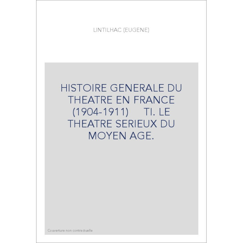 HISTOIRE GENERALE DU THEATRE EN FRANCE (1904-1911) TI. LE THEATRE SERIEUX DU MOYEN AGE.