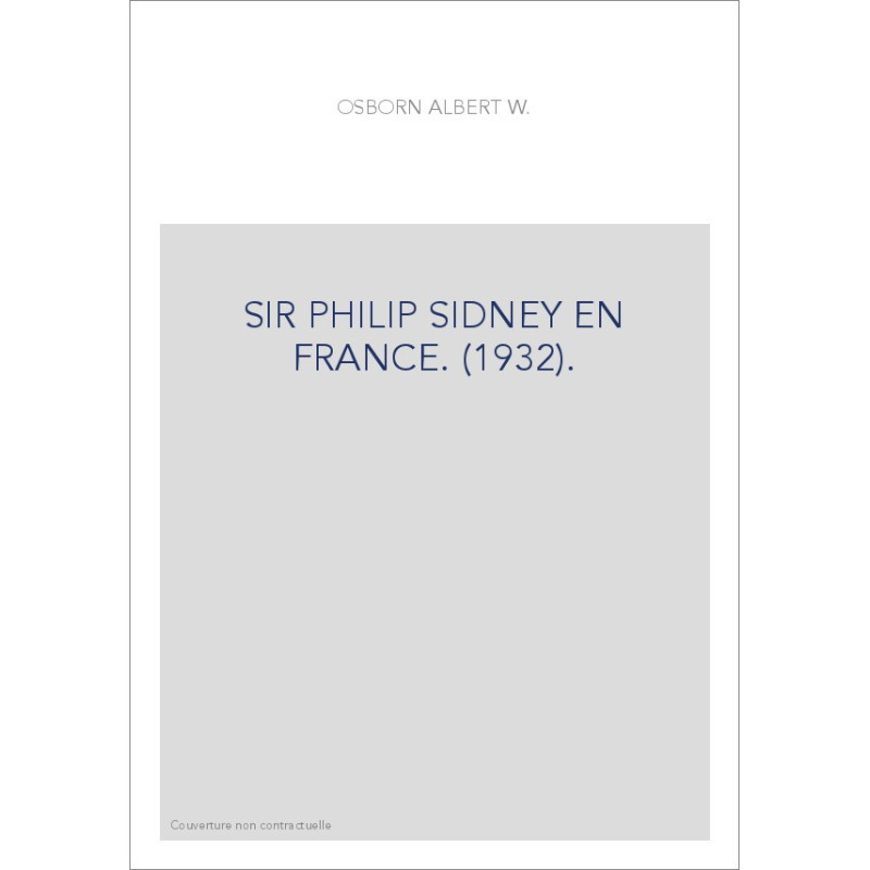 SIR PHILIP SIDNEY EN FRANCE. (1932).