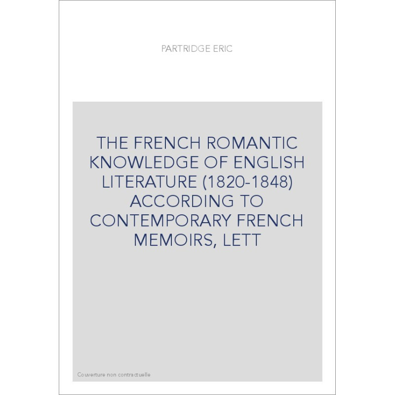 THE FRENCH ROMANTIC KNOWLEDGE OF ENGLISH LITERATURE (1820-1848) ACCORDING TO CONTEMPORARY FRENCH MEMOIRS, LETT