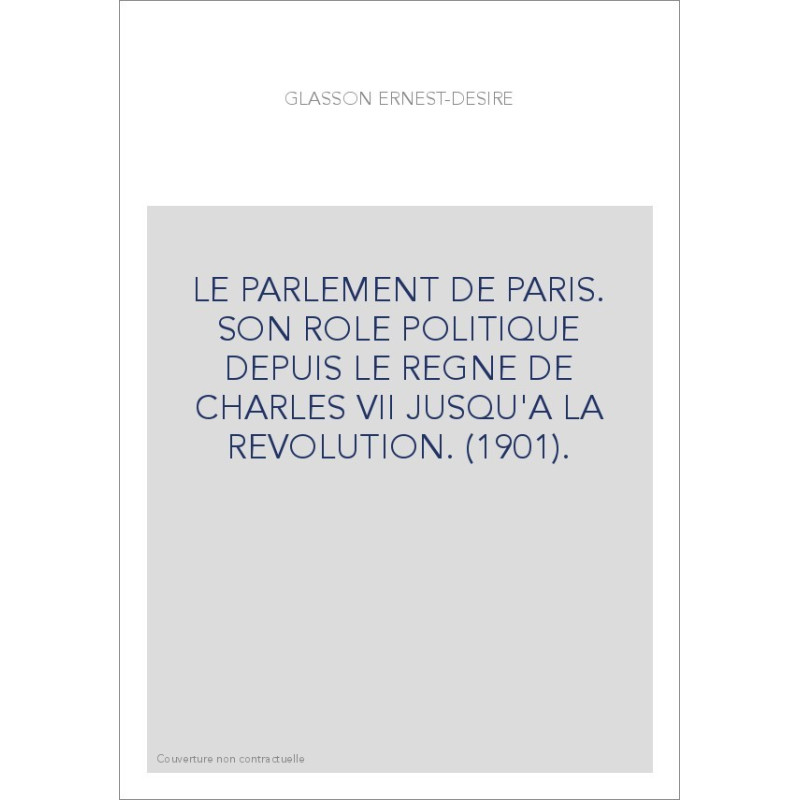 LE PARLEMENT DE PARIS. SON ROLE POLITIQUE DEPUIS LE REGNE DE CHARLES VII JUSQU'A LA REVOLUTION. (1901).