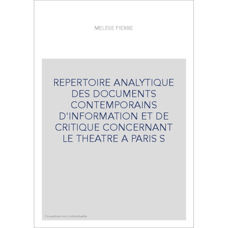 REPERTOIRE ANALYTIQUE DES DOCUMENTS CONTEMPORAINS D'INFORMATION ET DE CRITIQUE CONCERNANT LE THEATRE A PARIS