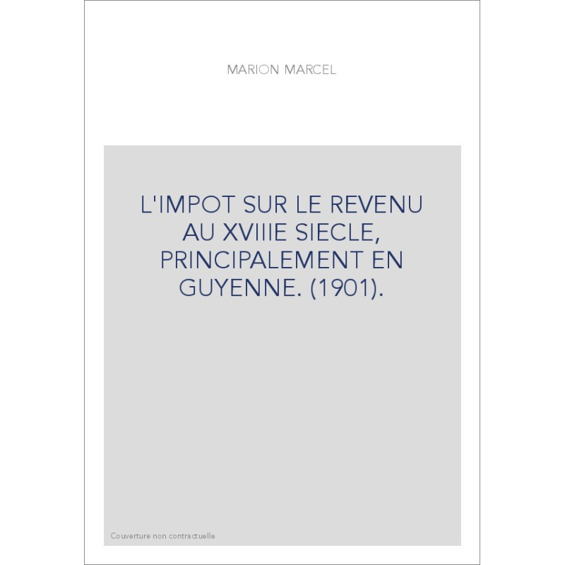 L'IMPOT SUR LE REVENU AU XVIIIE SIECLE, PRINCIPALEMENT EN GUYENNE. (1901).