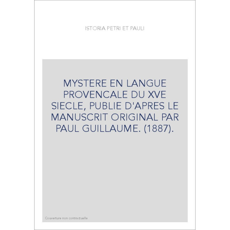 MYSTERE EN LANGUE PROVENCALE DU XVE SIECLE, PUBLIE D'APRES LE MANUSCRIT ORIGINAL PAR PAUL GUILLAUME. (1887).