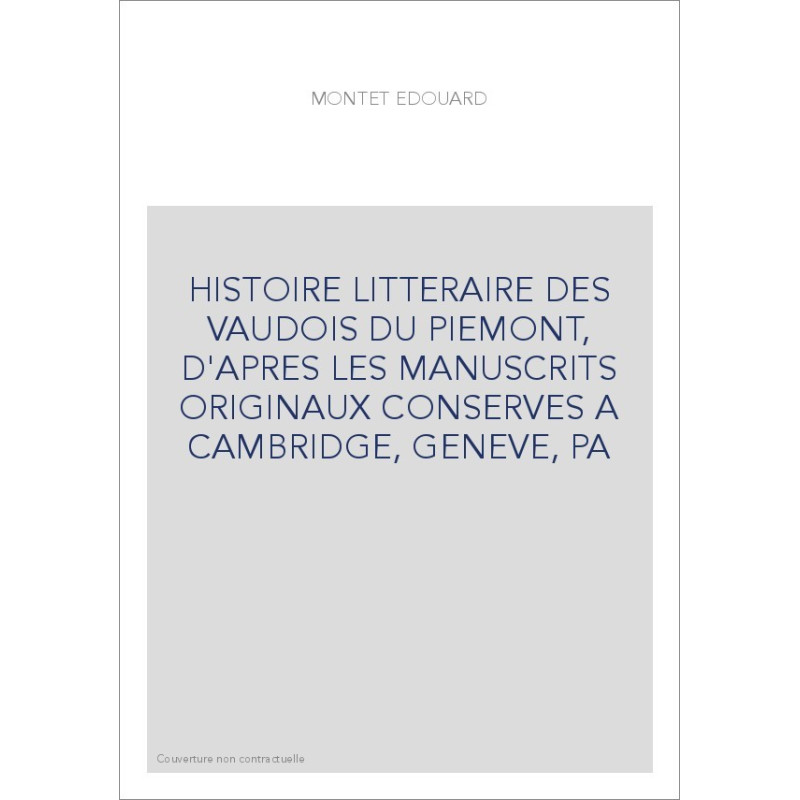 HISTOIRE LITTERAIRE DES VAUDOIS DU PIEMONT, D'APRES LES MANUSCRITS ORIGINAUX CONSERVES A CAMBRIDGE, GENEVE, PA