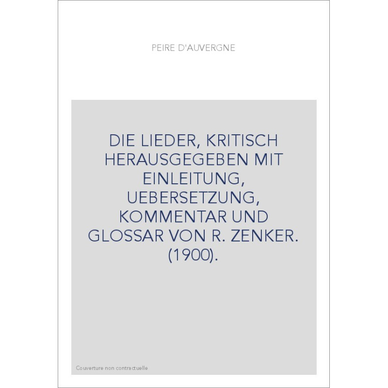 DIE LIEDER, KRITISCH HERAUSGEGEBEN MIT EINLEITUNG, UEBERSETZUNG, KOMMENTAR UND GLOSSAR VON R. ZENKER. (1900).
